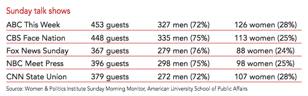 When we look at television, the results are just as troubling. As you can see below, even major Sunday talk show guest are 75% men. That’s crazy! No surpise then that the tally of TV station general managers was 17.8% in 2013 (and that is 1.5 percent down from 2012.)Screenshot 2014-02-20 23.13.49