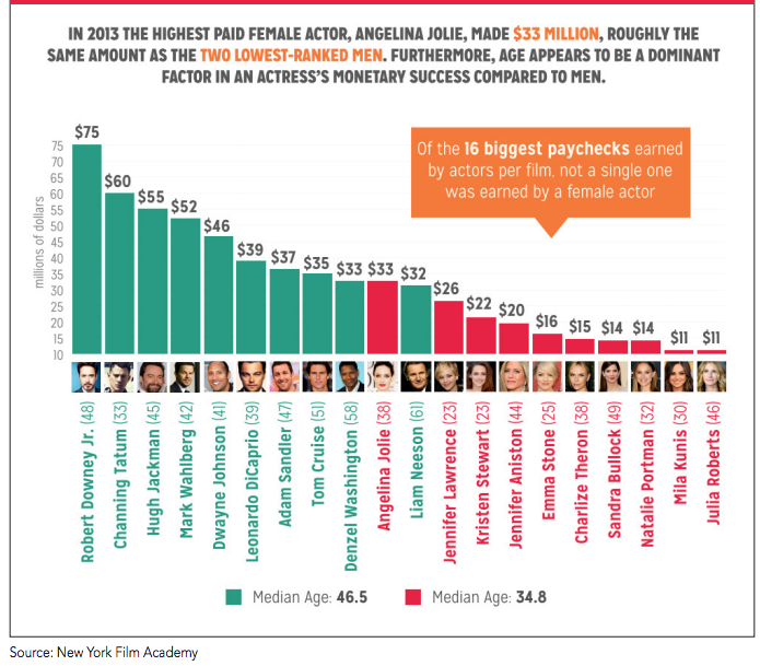 Not even actors are safe, and the public is fully aware of what they do. They are literally saying that top female actors are not worth as much as the top male actors.